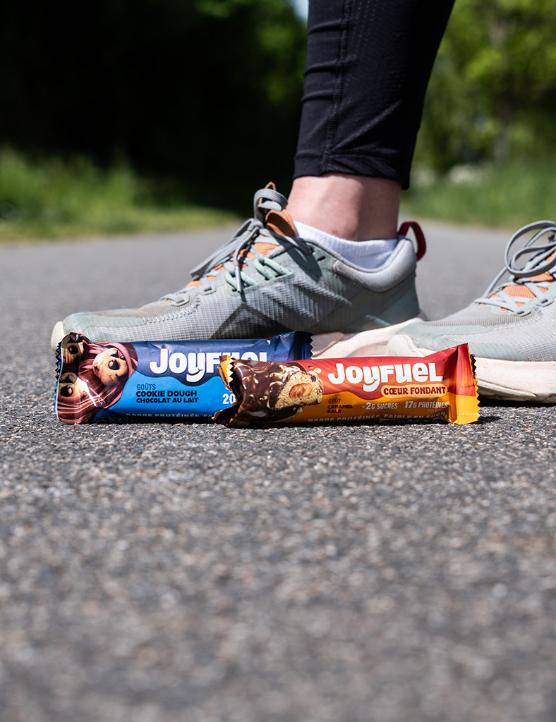 Véritable allié de la routine sportive, Joyfuel propose des barres protéinées pensées pour accompagner les coureurs après l’effort. Chaque bouchée offre un délicieux moment gourmand, avec plus de 15g de protéines par barre et peu de sucres : la collation post-effort idéale pour récupérer sans se priver. Cookie Dough ou Cœur Fondant Double Chocolat, deux recettes de snacks protéinés pour coureurs qui font fondre à chaque bouchée.